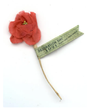The original poppy pictured below is a US poppy from a commemoration for Memorial Day in 1921, known as “Decoration Day” at the time. Canadian poppies used a similar design. Source: Canadian War Museum, “Poppy” (1921)