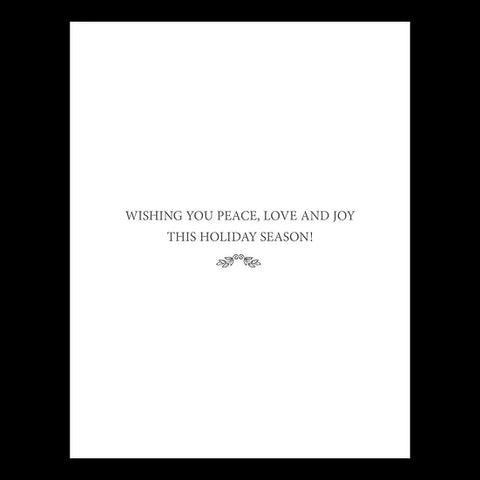 Share a heartfelt message of peace with your loved ones using this Holiday Greeting Card, showcasing an elegant illustration of Toronto City Hall. Inside, it carries the warm sentiment: Wishing you Peace, Love, and Joy this Holiday Season.