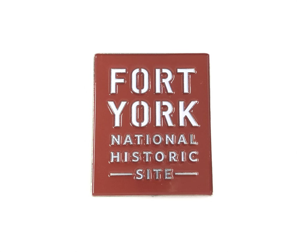 This expertly designed magnet showcases the Fort York National Historic Site emblem, highlighted by striking white lettering set against a rich red backdrop.